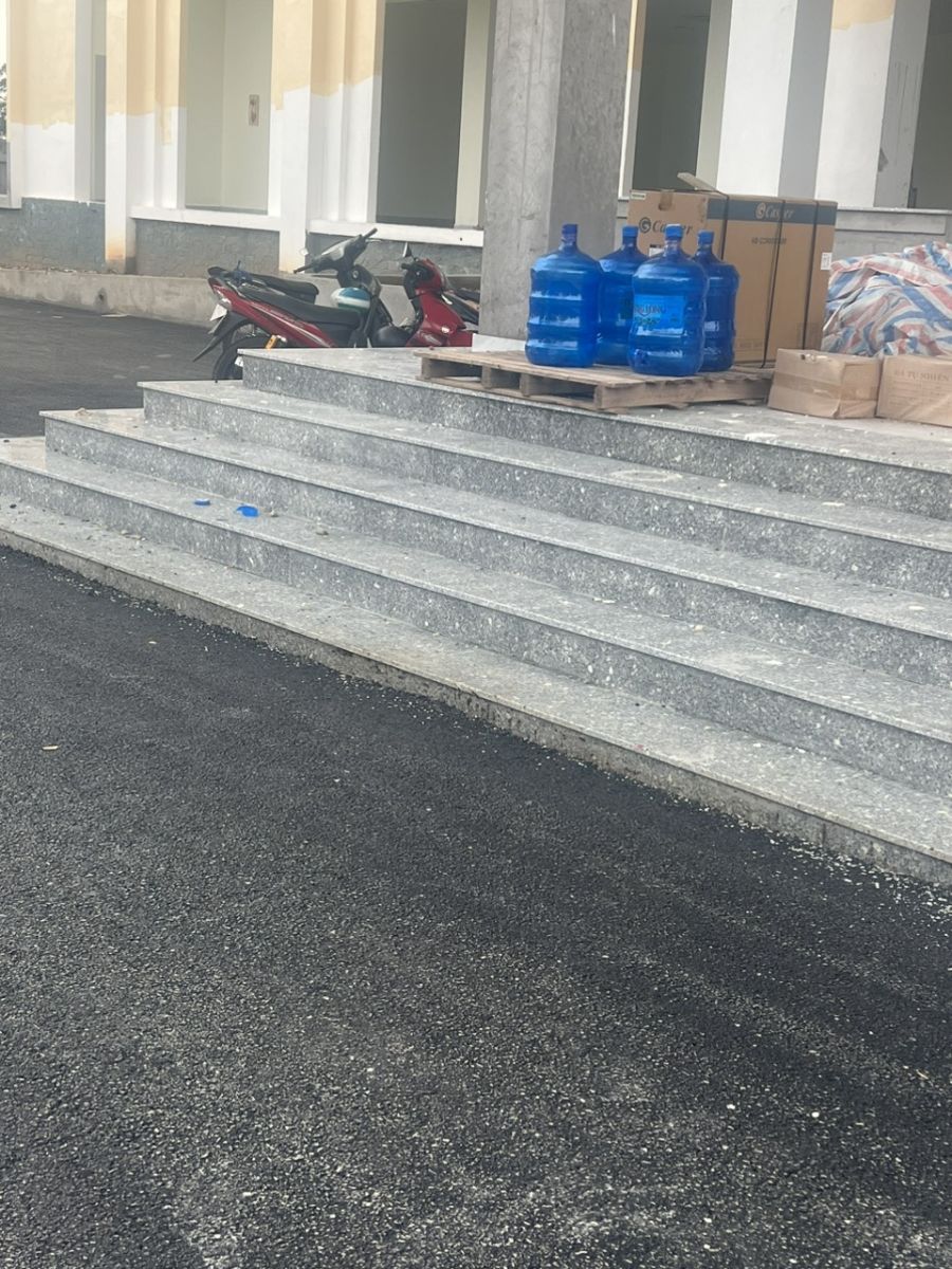 Với đặc điểm các hạng mục ở ngoài trời và chịu tác động rất nhiều của con người. Sau khi bàn bạc với chủ đầu tư, chúng tôi quyết định sử dụng đá Granite trắng suối lau loại đá có tính chất cứng, bền màu nên rất thích hợp để sử dụng làm đá ốp cầu thang, ốp bậc tam cấp – có thể chịu tác động rất nhiều từ con người, đồng thời chúng còn chịu được nước mưa, nhiệt độ, bền màu và giữ được vẻ đẹp tự nhiên nên đặc biệt thích hợp sử dụng là đá ốp cầu thang, bậc tam cấp.