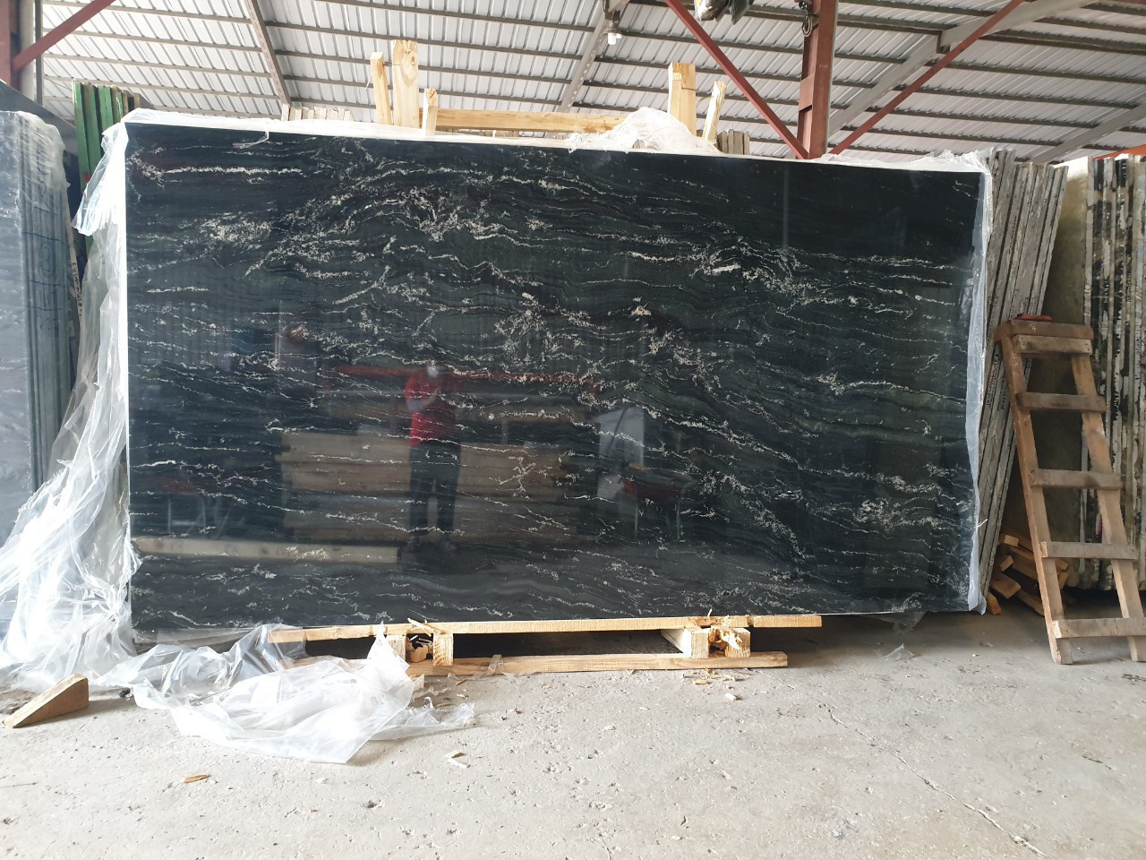 Hiện trạng: màu đen với những vân trắng nổi, bề mặt bóng đẹp , không vết nứt